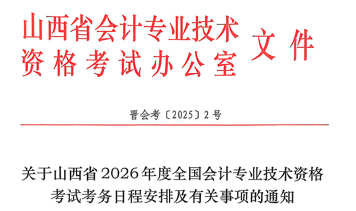 关于山西省2026年度全国会计专业技术资格考试考务日程安排及有关事项的通知