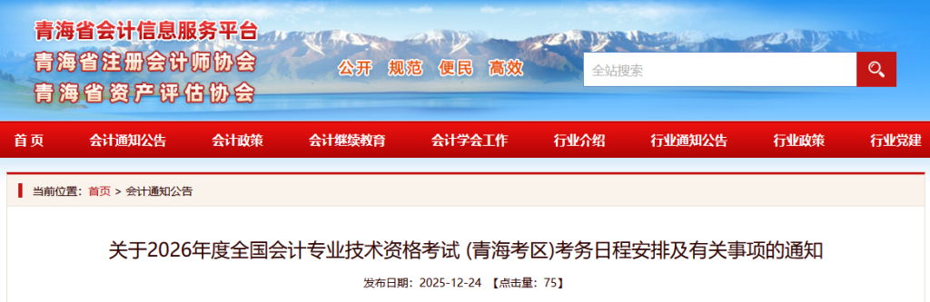 关于2026年度全国会计专业技术资格考试 (青海考区)考务日程安排及有关事项的通知