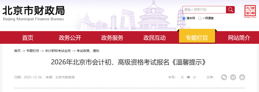 转载请注明:会计备考网 » 报名温馨提示|北京2026年初级会计考试报名官方温馨提示
