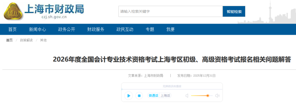 各位上海2026年初级会计、高级会计考生注意啦,上海市财政局已发布相关报名问题解答,为大家理清报名政策、规避报考误区。会计备考网的小编特意整理了这份完整版解答,涵盖报名方式、时间、属地要求等核心问题,不管是初次报考还是二战考生,都能从中找到关键信息,快随小编一起细看!