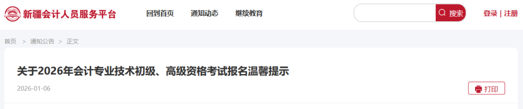 转载请注明:会计备考网 » 新疆2026年初级会计考试报名温馨提示来了!一文了解报名流程