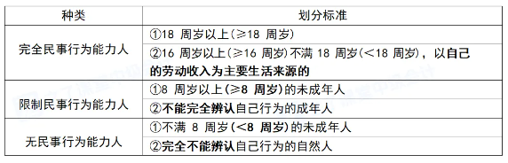 1.自然人的行为能力:判断依据为年龄、心智