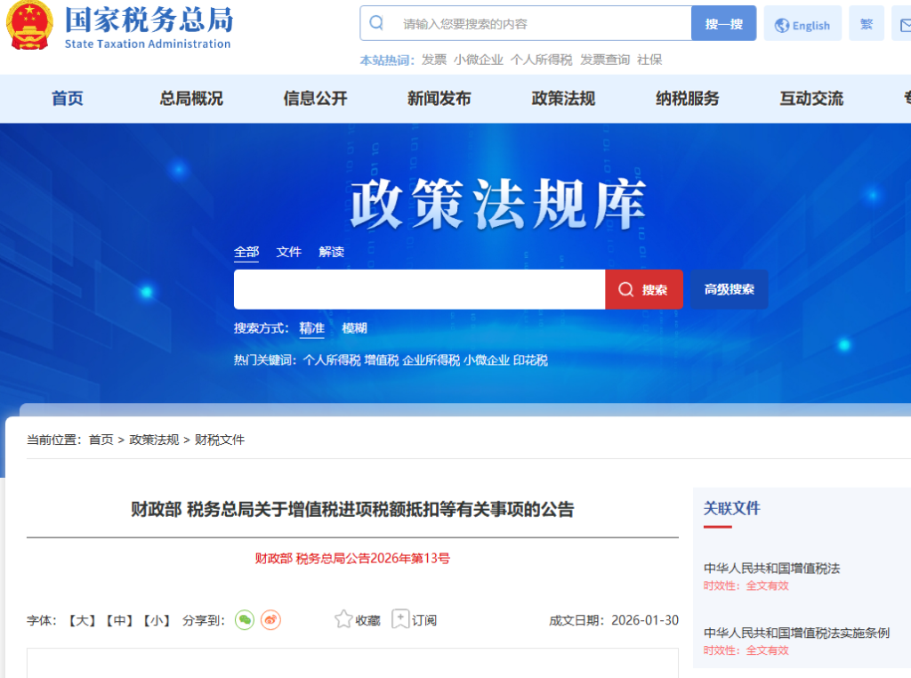 2026年增值税进项税额抵扣有关事项官方公告内容一览!别错过