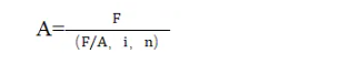 式中,A为年偿债基金,即为了在约定的未来某一时点清偿某笔债务或积聚一定数额的资金而必须分次等额形成的存款准备金,1/(F/A,i,n)为偿债基金系数。