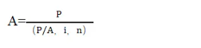 式中,A为年资本回收额,即在约定年限内等额回收初始投入资本的金额,1/(P/A,i,n)为资本回收系数。
