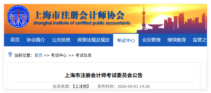 转载请注明:会计备考网 » 上海2026年注会考试报名简章发布!速看资格审核截止时间