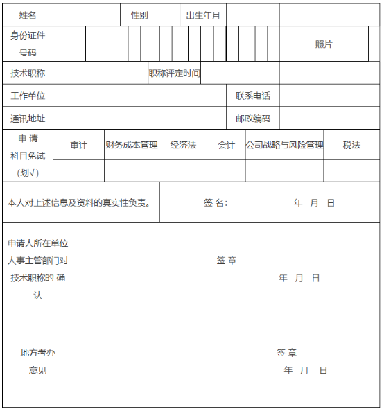 2026年度注册会计师全国统一考试专业阶段考试科目免试申请表